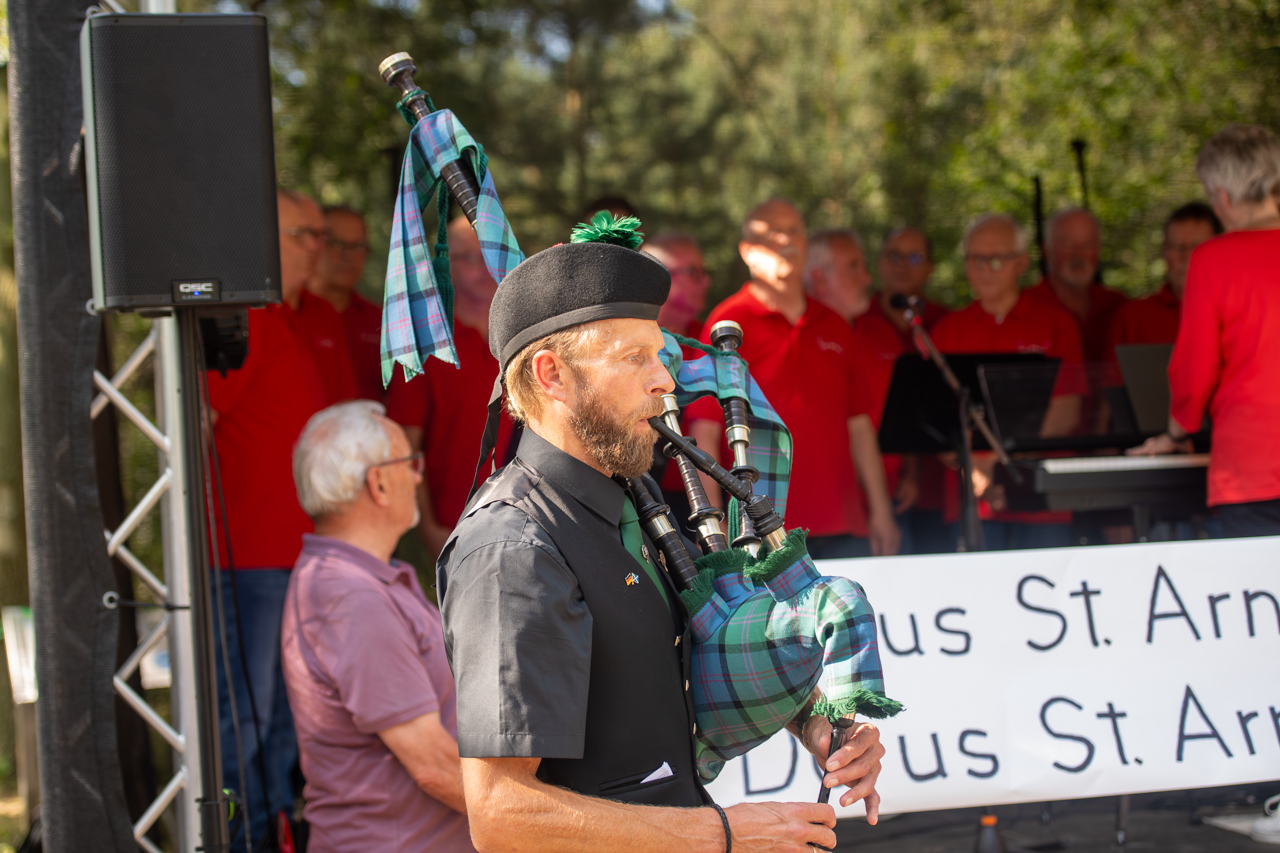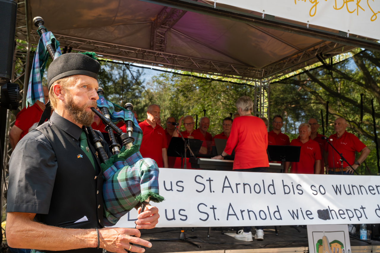 Der ehemalige Hausmeister der Josefschule und Mitglied im Männerchor nutzte die Corona-Zeit, dieses Lied über St. Arnold zu schreiben. Beim DEK-Fest zum 10-jährigen Bestehen wurde es erstmals gesungen vom Chor "Gut gelaunt".